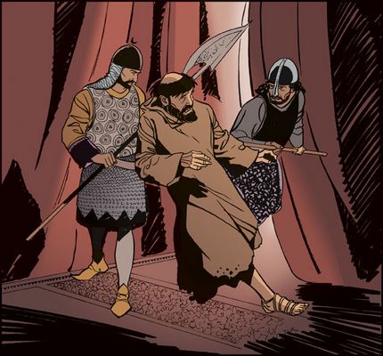 Qui pourrait nous le décrire tenant tête avec intrépidité, parlant avec courage, répondant avec assurance et chaleur à ceux qui insultent la religion du Christ ? Car il est arrêté par les gardes avant même d'arriver au Sultan, accablé d'injures et de coups, mais il ne frémit pas ; on le menace de mort, il ne se trouble pas ; on lui promet le supplice, il ne s'émeut pas. Après avoir été le jouet de tant de haine, il est enfin reçu avec beaucoup de courtoisie par le Sultan qui lui donne tous les signes de faveur et lui offre de nombreux cadeaux pour essayer de fléchir son âme vers les richesses du monde. Mais constatant que François repousse énergiquement tous ces biens, il demeure stupéfait, le regarde comme un homme extraordinaire ; il l'écoute volontiers et se sent pénétré par sa parole… Mais ici encore le Seigneur refuse d'exaucer les désirs du saint : il se réserve de lui accorder la faveur toute particulière d'une autre grâce.