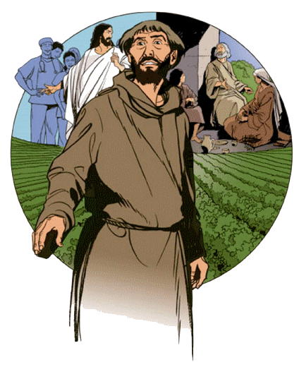Saint François a créé l'ordre des pénitents en 1221. Il s'agissait d'hommes et de femmes qui, après avoir longtemps nourri en eux l'appétit des nourritures terrestres, avaient trouvé l'occasion d'une nouvelle naissance dans la doctrine de François, mais sans aller cependant jusqu'à renoncer à assumer leurs responsabilités vis à vis du monde et à prendre la voie de la pauvreté absolue. C'est à nous, ses frères de l'Ordre Franciscain Séculier, que François nous dit : "Ne vous pressez pas de quitter vos maisons. Restez où vous êtes, et je vous dirai ce qu'il faut faire pour le salut de vos âmes" (Fior 16 9). Notons au passage que François ne nous dit pas : "Je vous dirai ce qu'il faut faire pour remettre le monde à l'endroit." Mais François sait qu'avec la conversion de tout un chacun commence la seule vraie réforme de la société, la seule vraie construction d'un monde plus fraternel et plus évangélique.